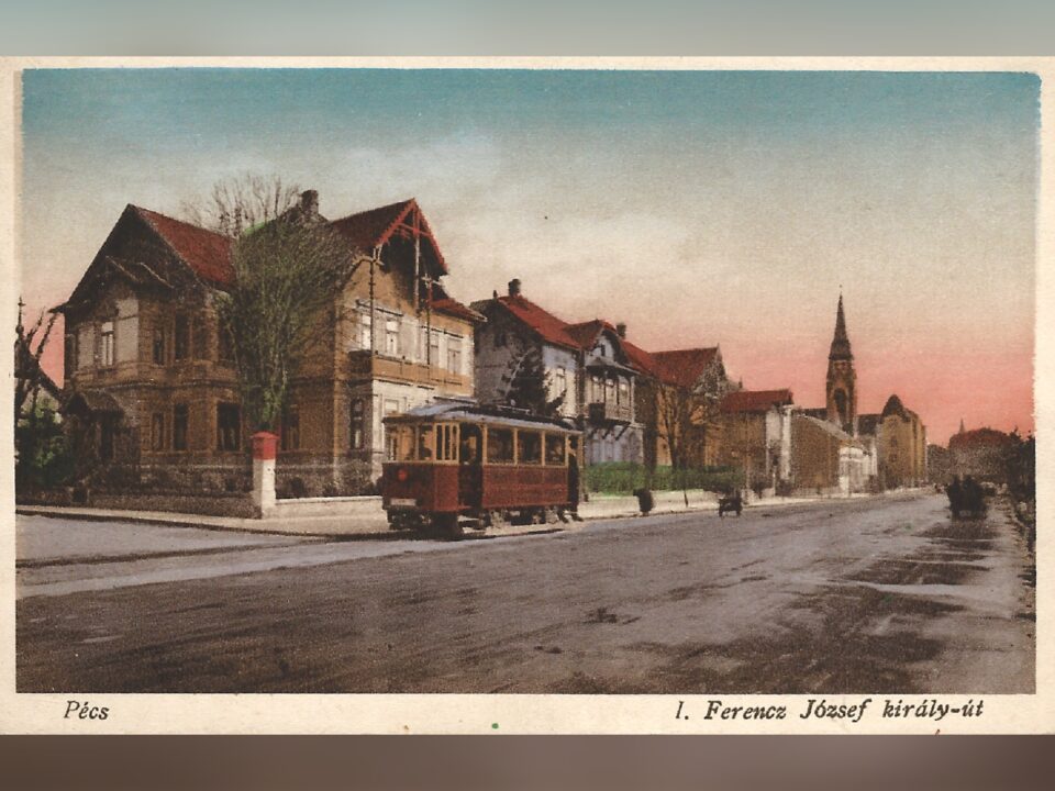 Egy körülbelül száz évvel ezelőtt kiadott képeslap Pécs központi épületéről. A kép forrása: Magyar Nemzeti Digitális Archívum / Csorba Győző Könyvtár Helyismereti Gyűjtemény
