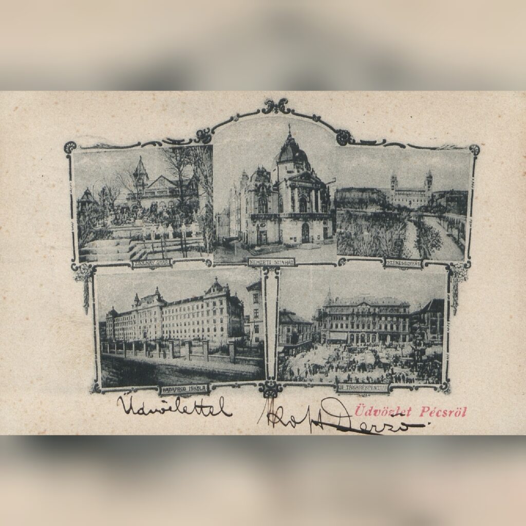A pécsi Széchenyi tér 1910 körül, korabeli képeslapon
