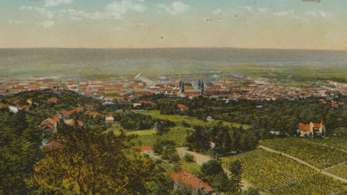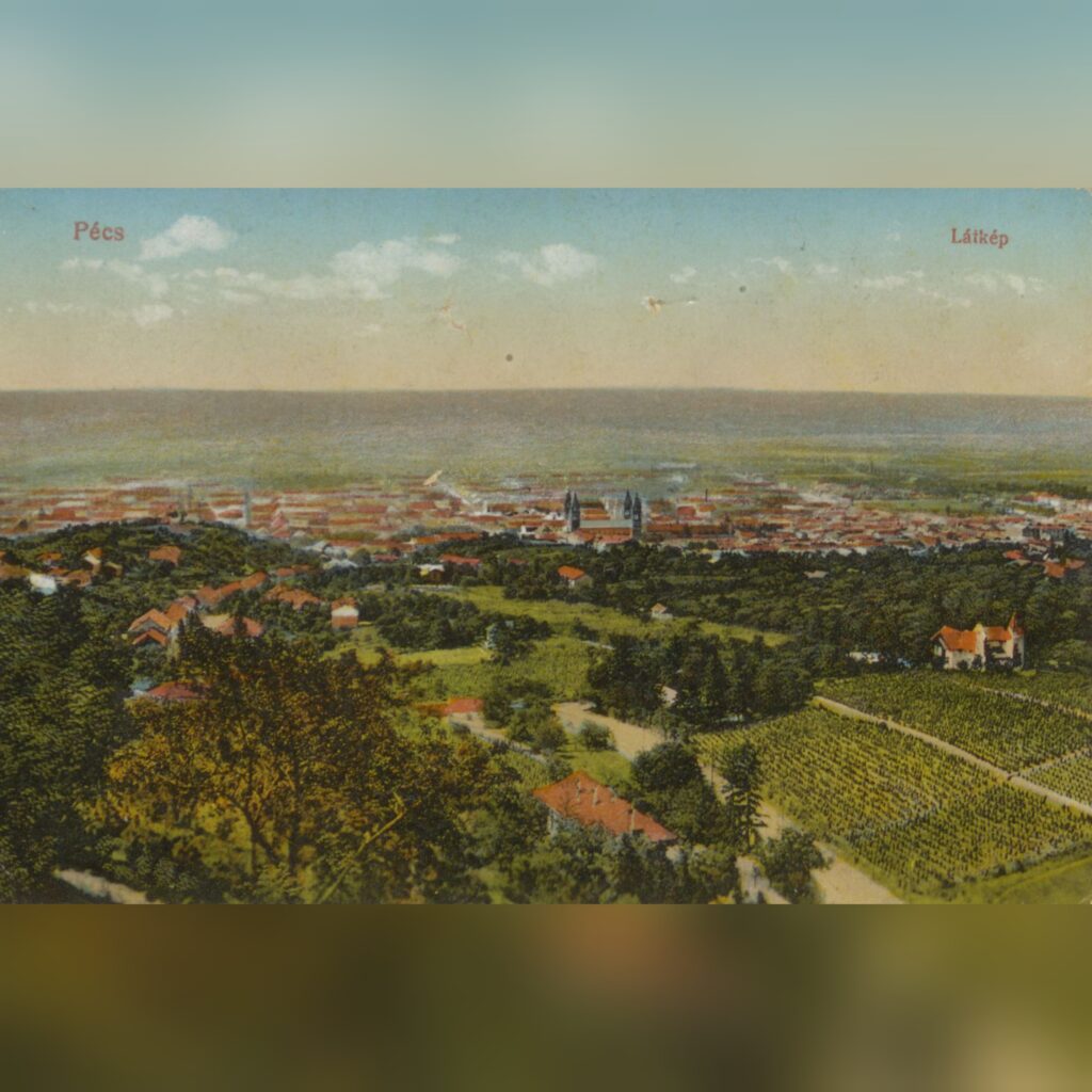 Pécsvárad látképe a két világháború közötti időszakban, korabeli képeslapon